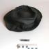 Description : Chapeau tressé d'une seule pièce, coiffe enfoncée, ruban noir avec un noeud plissé sur le devant et simple à l'arrière. Aile renforcée sur le pourtour et relevée sur le devant. Pourtour intérieur en toile fine.