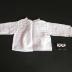 Description : Le corps du vêtement de bébé est fait d'une seule pièce avec une couture sur les épaules et sur laquelle ont été montées des manches. Le vêtement est fendu à l'arrière et fermé en se croisant. Un lacet plat coulisse dans l'ourlet de l'encolure pour fixer le vêtement. Une dentelle blanche est cousue autour du col et des manches.