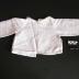 Description : Le corps du vêtement de bébé est fait d'une seule pièce avec une couture sur les épaules et sur laquelle ont été montées des manches. Le vêtement est fendu à l'arrière et fermé en se croisant. Une dentelle blanche est cousue autour du col et des manches.