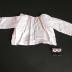 Description : Le corps du vêtement en coton blanc de bébé est fait d'une seule pièce avec une couture sur les épaules et sur laquelle ont été montées des manches. Le vêtement est fendu à l'arrière et fermé en se croisant. L'encolure et les manches sont terminées par une broderie en feston réalisée en coton blanc. Le devant est orné d'une broderie représentant un motif floral.