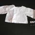 Description : Le corps du vêtement de bébé est fait en deux parties assemblées par une couture sur le devant et de coutures aux épaules. Sur ce corps sont montées les deux manches. Le bas, l'encolure et les manches sont terminées par des ourlets. Le vêtement est fendu dans le dos et se ferme en se croisant.