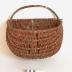Description : Panier qui possède une face plane formée de cinq arceaux concentriques. Le devant forme une poche et comporte sept arceaux. Les osiers passent entre les arceaux. Une anse en osier de 7 cm permet de le suspendre au mur.