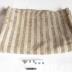 Description : Grande pièce de tissu avec un petit ourlet fait main aux deux extrémités, composée de deux pièces de tissu assemblées suivant la longueur par un surjet. Le tissu est tissé en bandes de 2 cm de largeur de couleur écru et marron en alternance.