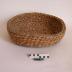 Description : Récipient sur plan circulaire à bord bas galbé constitué de fibres végétales tressées en double épaisseur et constituant une spirale à partir du centre.