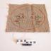 Description : Tapis à broder, dont le motif représente un puits avec un seau, une poule, un oiseau et des fleurs. Il est en voie d'exécution. Le pourtour est commencé au point de tige en rouge et jaune ainsi que des fleurs en rouge, jaune et vert, les pierres du puits en marron.