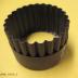 Description : Pièce métallique constitué d'un bande circulaire et verticale ( D 6,2 cm Ht 4,2 cm ) en tôle ondulée ( Lg de chaque ondulation 0,6 cm). Une seconde bande , de métal lisse, enserre la première, mais sa hauteur étant moindre (2,5 cm) , elle ne recouvre qu'un peu plus de la moitié supérieure de cette première bande