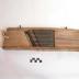 Description : forte planche sur laquelle est fixée d'un côté une lame dentée sur un bord pour tailler en tranches plates et sur l'autre face un couteau ondulé pour obtenir des tranches ondulées. Sur une extrémité une tige métallique permet le glissement de la pomme de terre. Sur les bords 2 vis à ailette permettent d'incliner la planche modifiant ainsi l'épaisseur des tranches. Au sommet un trou dans lequel est passé une ficelle permet de suspendre l'appareil.