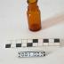 Description : Récipient de base circulaire à bords droits sur 4,5 cm se poursuivant par un goulot de 1,5 cm de diamètre et se terminant par un renflement circulaire.