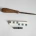 Description : Petite lime de section triangulaire (L : 10,3 cm côté du triangle : 0,9 cm) allant en s'amincissant vers l'extrémité. La soie est noyée dans un manche de réemploi taillé au couteau.