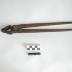 Description : Petite tenaille de forge constituée de 2 tiges mâchoires articulées par un rivet. Les tiges sont de section rectangulaire, elles vont en s'amincissant vers l'extrémité opposée aux mâchoires pour faciliter la préhension. Les mâchoires sont aplaties et profilées pour leur donner une surface plane.