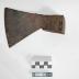 Description : Fer de hachette réalisé à partir d'une tôle forte repliée et ressoudée à la forge, le tranchant est arrondi. L'oeil est triangulaire. La forme générale de la hachette va en s'évasant de l'oeil au tranchant.
