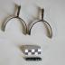 Description : Tige métallique de section (demi circulaire) cintrée pour encercler le talon de la chaussure. Cette tige forme le collier. Ses extrémités sont percées d'un trou. Le collier supporte le collet ou la tige au bout de duquel se trouve la molette à l'aplomb du collet se trouve une appendice percé d'un trou.