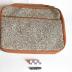 Description : Sacoche rectangulaire aux angles arrondis avec une poignée en plastique escamotable. Une poche doublée, toile plastifiée fermée une fermeture éclair dorée. Une poche extérieur fermé par une fermeture éclair doré. L'extérieur imite un tissu de laine gros tissage. (beige, noir; jaune, rouge). Le pourtour (base et côtés latéraux) imite un cuir marron clair.