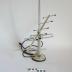 Description : Antenne pour téléviseur en poste FM composée d'un mât vertical de 23 cm faisant partie intégrante du support muni d'un dessous en caoutchouc. Le pied du support contient le circuit de raccordement de l'antenne. Celle-ci est composée d'un rateau de quatre transversales de longueur variable (13,14,15 et 16 cm) d'une transversale recourbée à ces extrémités (L : 28 cm). Les fils de liaison sont raccordés à cette transversale ; une transversale rigide 31 cm. Le rateau est orientable dans toutes les directions. De part et d'autre du mat et d'une tige creuse télescopiques : antenne pour FM. Les deux tiges sont orientables dans le plan (0 à 90 °). L'antenne est munie de son câble de liaison.