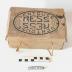 Description : Boîte rectangulaire (13x19 cm : ht 7,5 cm) cloisonnée à l'intérieur de façon à ranger six ampoules. Dans le fond de la boîte, un espace cylindrique, accessible par la base d'un petit côté est prévu pour ranger une pompe. Deux lacets plats servent de poignées de transport.