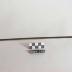 Description : Lame de scie à dents inclinées. Toutes les dents ont la même hauteur.(0,2 cm). A chaque extrémité de la lame une partie plus large sans dent percé de trous pour permettre la fixation.