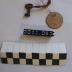 Description : Petite clé reliée par une ficelle à une étiquette ronde en carton indiquant avec quelle serrure elle fonctionne.