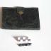Description : Portefeuille composé d'une grande poche occupant toute la longueur du portefeuille ouvert et se fermant par une fermeture à pression, deux poches ouvertes et une troisième de plus petite dimension. L'autre côté du portefeuille comprend une poche ouverte et une poche à rabat se fermant par une patte s'introduisant dans un passant. Le portefeuille est maintenu fermé par une patte avec fermeture à pression. Sur une des faces du portefeuille se trouve une tête de cheval entourée d'un fer à cheval.